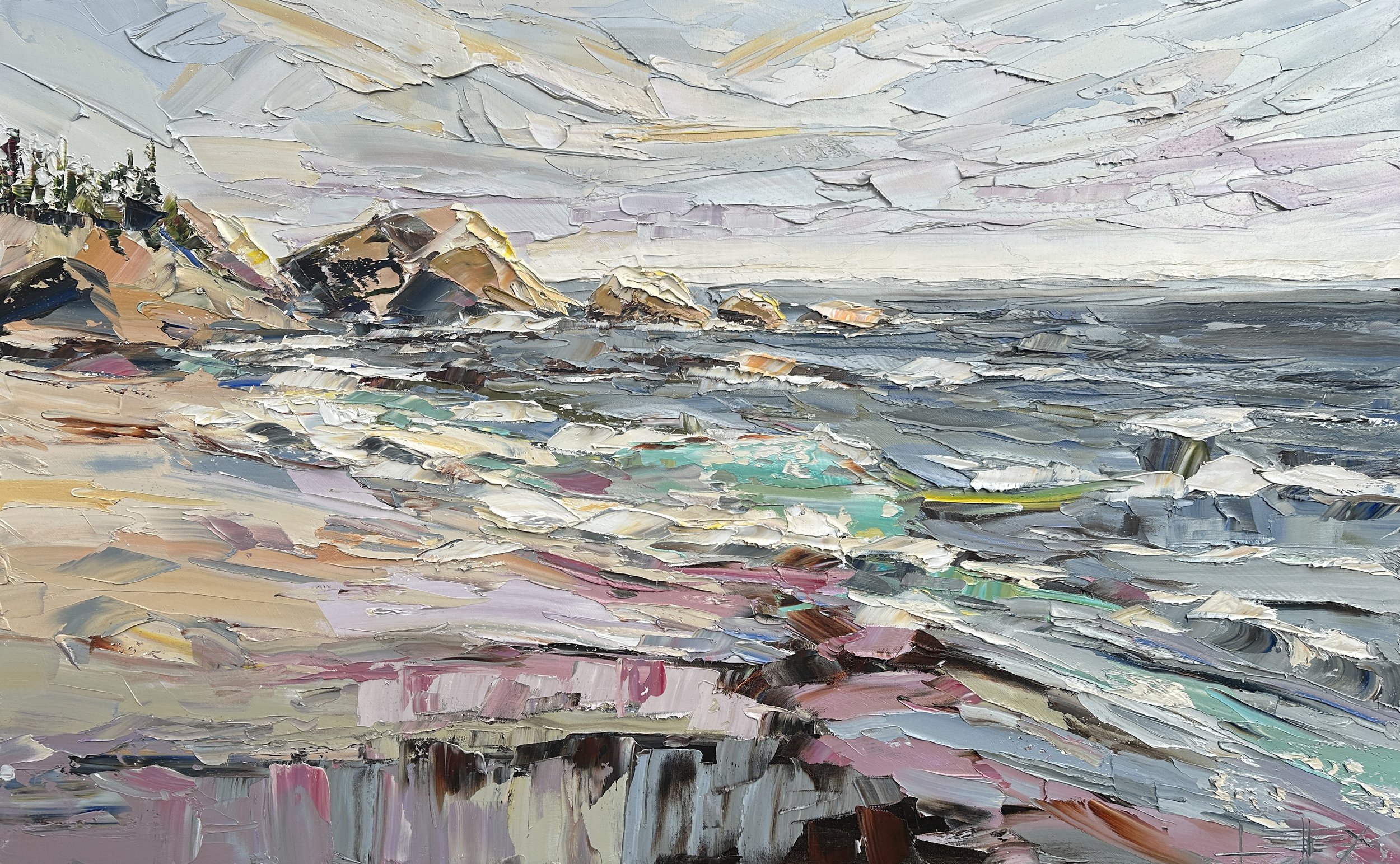 Contemporary Coastal Paintings by Award Winning Artist Lisa Elley Shop Original Paintings Sea and Stone Blufflight Calm California Coastal Poppies